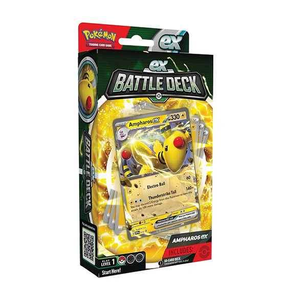 Laad jezelf op met elektrische energie en laat jezelf gaan met dit kant-en-klare EX Battle Deck geleid door de krachtige Ampharos EX. In deze doos vind je alles wat je nodig hebt als Pokémon trainer om direct te beginnen met spelen. Een 60 kaarten deck dat direct uit de doos speelbaar is, damage counters, een mooie metalen munt en andere extra's maken jou helemaal klaar voor de strijd!