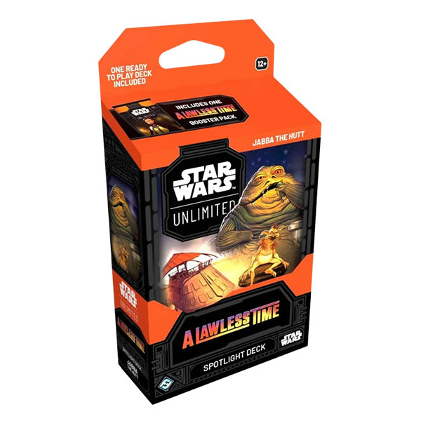 De Star Wars Unlimited – A Lawless Time Spotlight Deck draait rond de beruchte Jabba the Hutt, één van de meest invloedrijke misdaadbazen uit het Star Wars-universum.